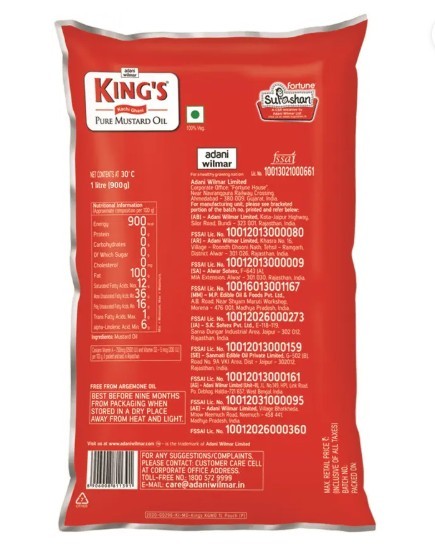 King's Kachi Ghani Pure Mustard Oil Pouch (1 L)